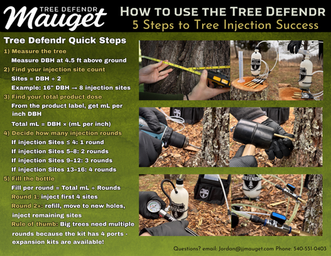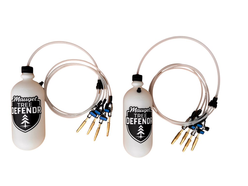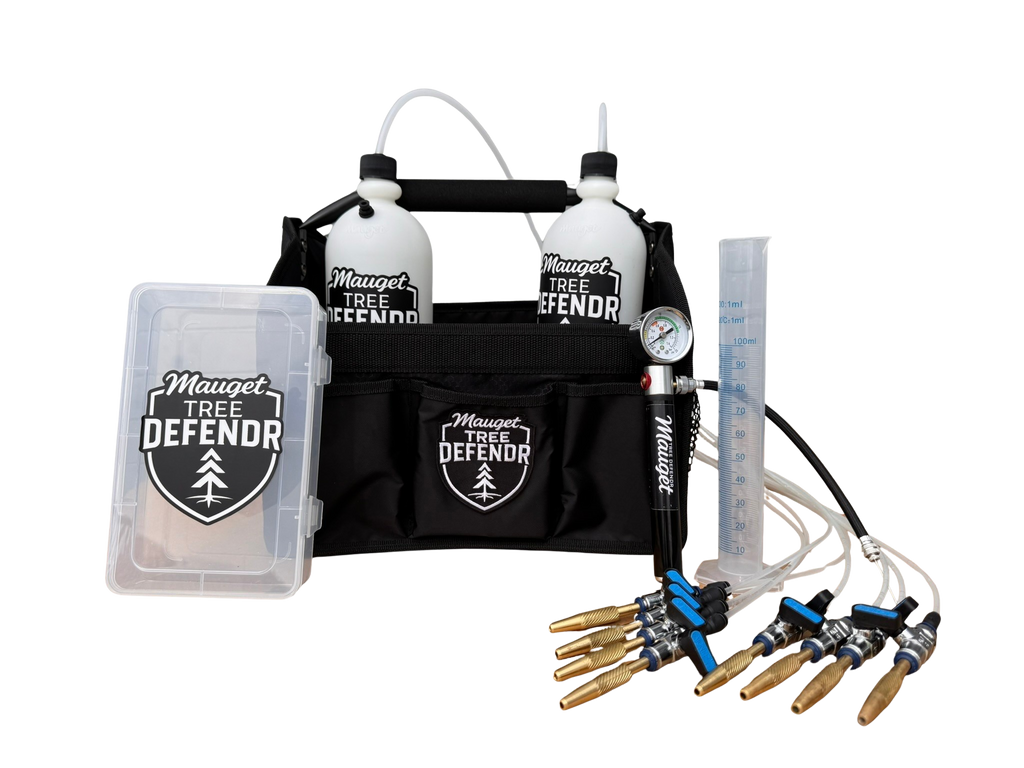 The Mauget Tree Defendr® Double Kit is a professional dual-reservoir trunk injection system designed for arborists and plant health care (PHC) professionals managing high-production treatment programs. With two bottle assemblies operating from a single system, this kit increases efficiency on large diameter trees and multi-treatment jobs.